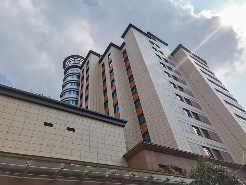 項目位于上海新村路,建筑面積近10萬平方米,為三級甲等綜合性醫(yī)院。 醫(yī)院外立面使用協(xié)進純色陶瓷薄板鋪貼。 產品色澤均勻細膩,效果整潔大氣。