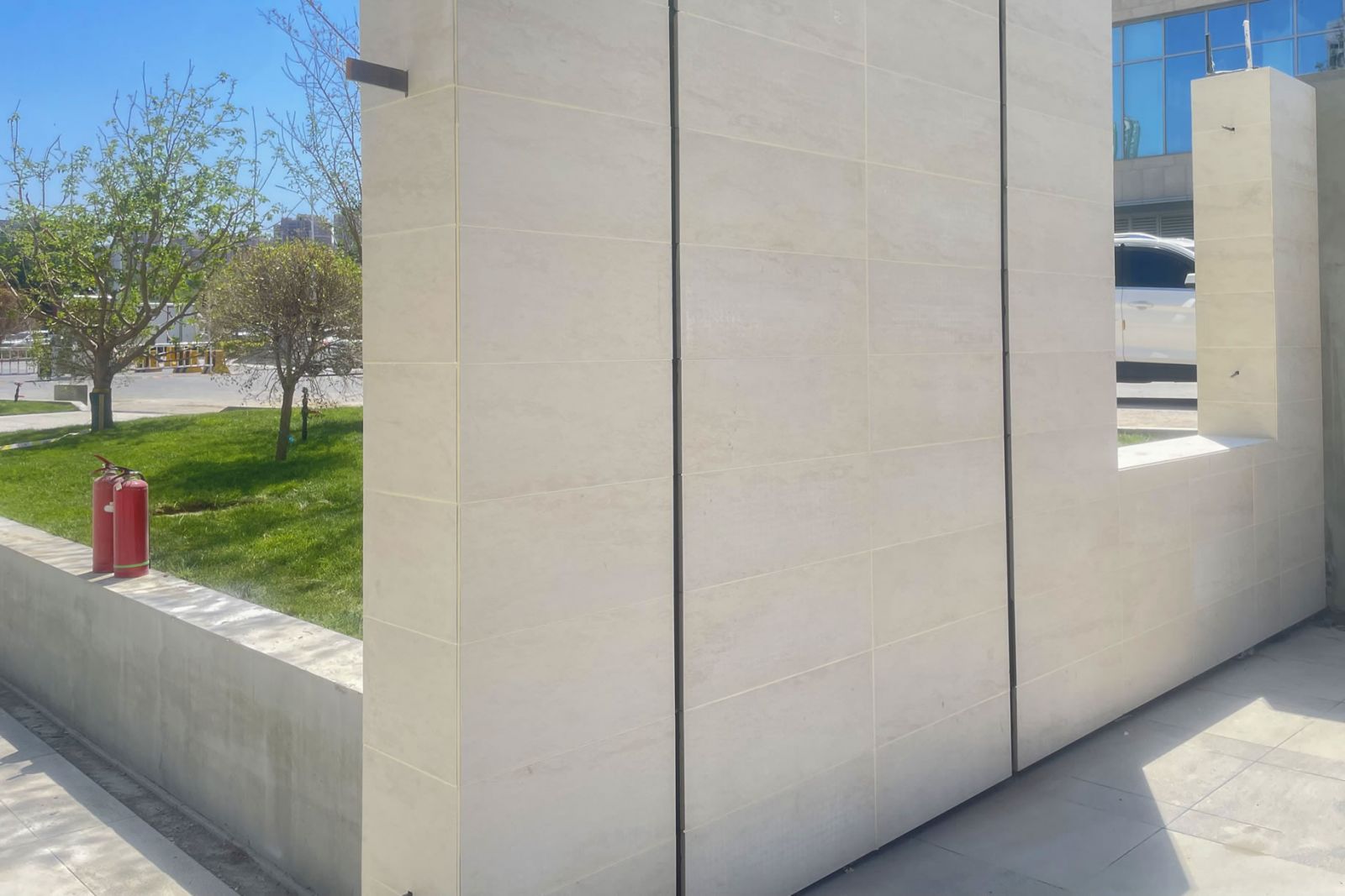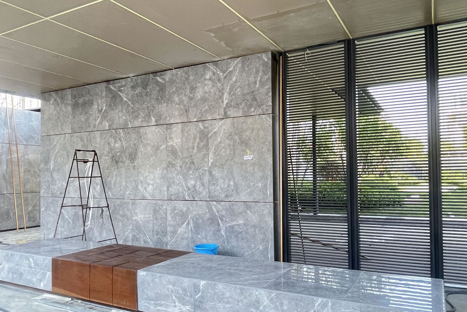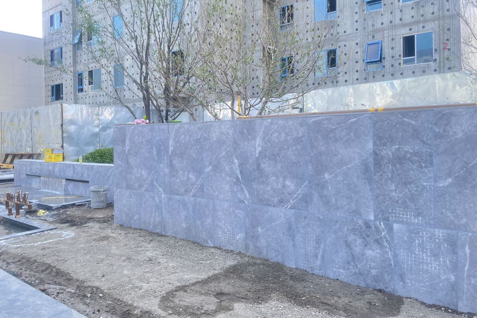 協(xié)進(jìn)厚板工程案例——烏魯木齊萬科天山府 該項(xiàng)目是一座綜合性住宅小區(qū),其園林設(shè)計(jì)采用了多種顏色的協(xié)進(jìn)厚板,呈現(xiàn)出豐富多彩的景觀效果。 其中,地面使用了浪花白和夜里雪、芝麻灰系列混和鋪貼,此外,在景墻的設(shè)計(jì)中,維納多米黃和愛馬仕灰色的景墻磚也被巧妙地應(yīng)用,使整個建筑物外觀更加美麗。