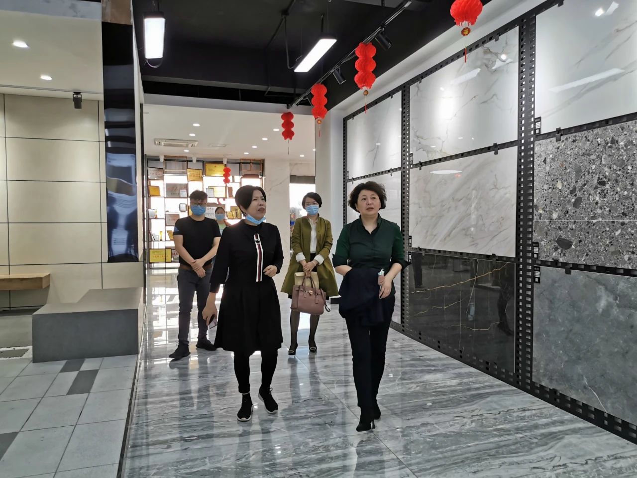 曾檢察長(zhǎng)一行在楊寶貴副董事長(zhǎng)的介紹下饒有興趣地參觀了產(chǎn)品展廳,對(duì)協(xié)進(jìn)研發(fā)生產(chǎn)的一系列大規(guī)格薄板、大板、陶瓷薄板復(fù)合保溫一體板、巖板等綠色節(jié)能新產(chǎn)品,以及3D噴墨等工藝技術(shù)在瓷磚產(chǎn)品上的運(yùn)用贊嘆不已,不時(shí)詢問(wèn)諸多產(chǎn)品在整體家裝領(lǐng)域的鋪貼使用效果。