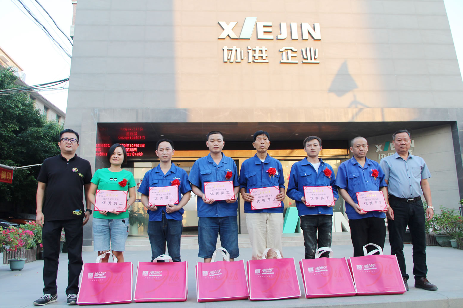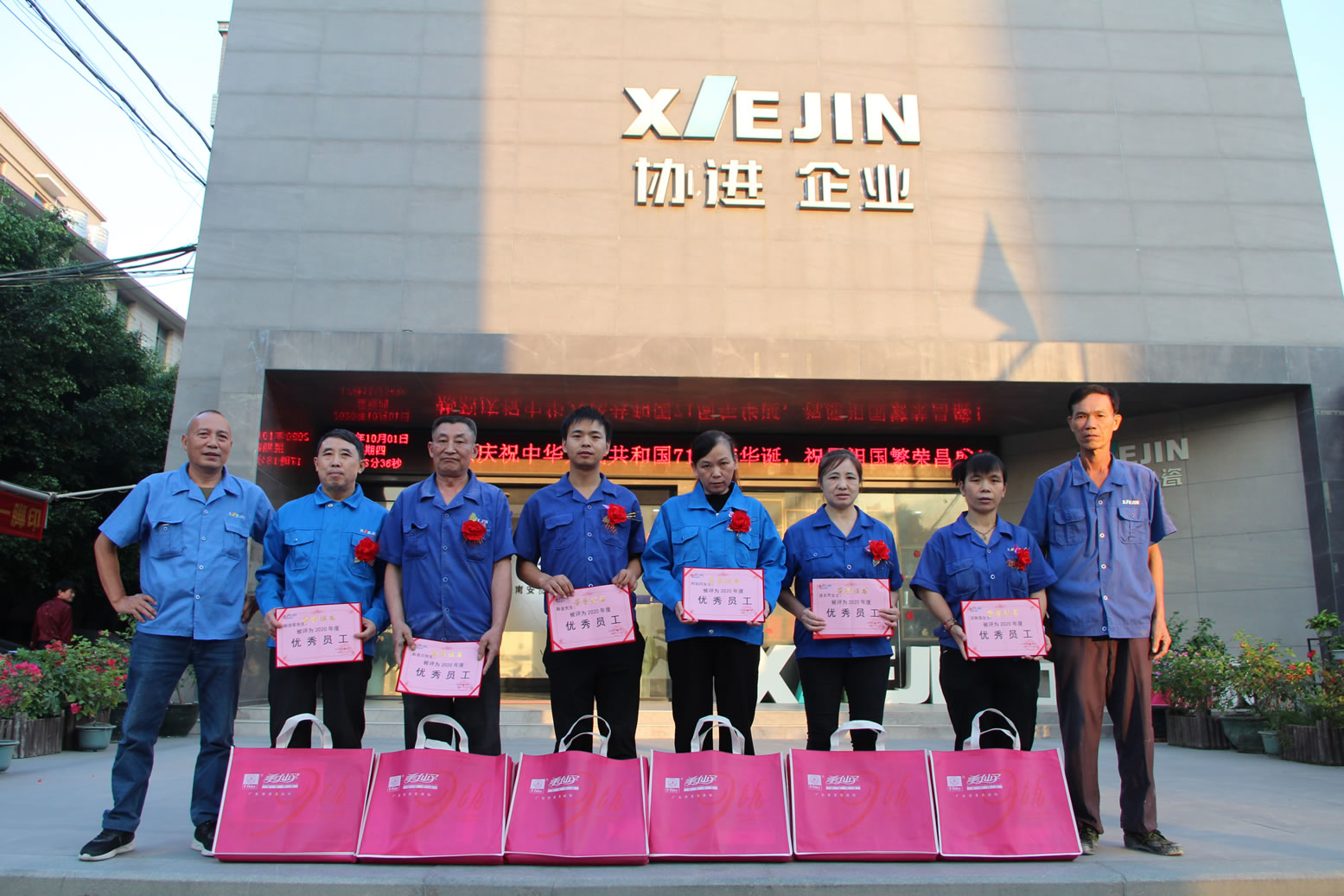 王少華總經(jīng)理等公司領(lǐng)導(dǎo)為34名2020年度優(yōu)秀員工頒發(fā)獎狀獎品,借此感謝全體協(xié)進(jìn)人一年來的辛勤勞動,同時(shí)祝愿偉大的祖國繁榮昌盛、國泰民安。