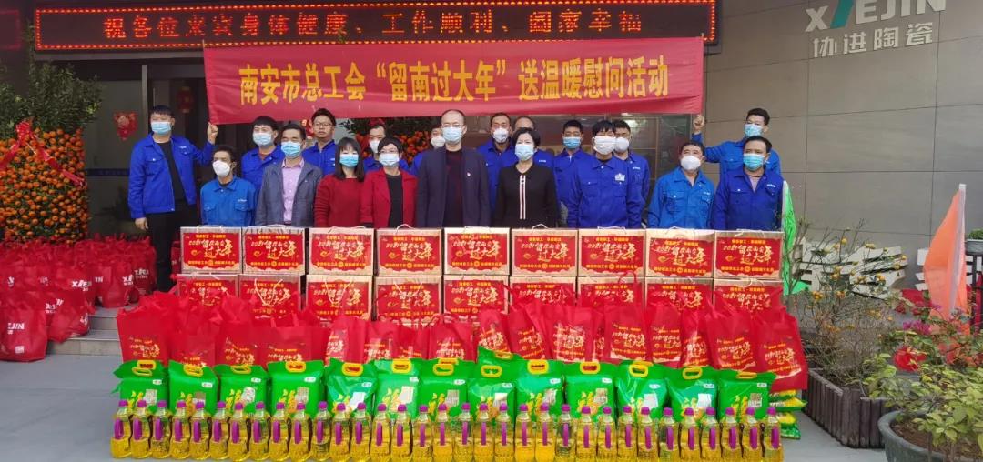 臘月時(shí)節(jié),暖風(fēng)徐徐。南安市紀(jì)委監(jiān)委駐市總工會(huì)機(jī)關(guān)紀(jì)檢監(jiān)察組副組長(zhǎng)姚添丁、南安市總工會(huì)組織部負(fù)責(zé)人陳雅婷帶隊(duì),在官橋鎮(zhèn)黨委二級(jí)主任科員、鎮(zhèn)總工會(huì)主席李彩芳,官橋鎮(zhèn)人力資源和社會(huì)保障所所長(zhǎng)、鎮(zhèn)總工會(huì)副主席蔡偉忠等人的陪同下,蒞臨協(xié)進(jìn)公司走訪慰問留南過年的外來員工,為員工們送來了黨委、政府、工會(huì)娘家人的新春關(guān)懷和溫暖禮包。