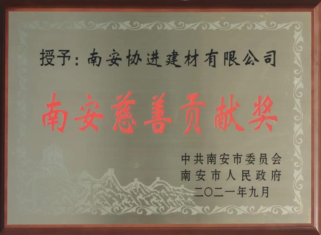 公司倡導(dǎo)“協(xié)進(jìn)一家親,生活更開心”的企業(yè)文化理念,在發(fā)展的同時(shí)不忘回報(bào)社會(huì),通過南安市慈善總會(huì)、官橋鎮(zhèn)政府、官橋商會(huì)以及其他渠道積極、熱心參與教育、醫(yī)療(抗疫)、關(guān)愛老人、扶貧濟(jì)困、文化體育等各項(xiàng)社會(huì)公益事業(yè)。榮獲南安市委、市政府頒發(fā)“南安慈善貢獻(xiàn)獎(jiǎng)”。