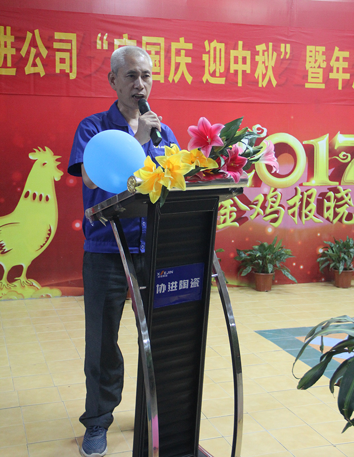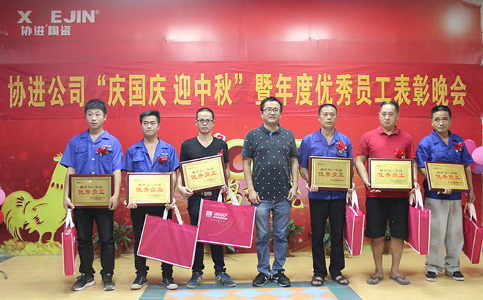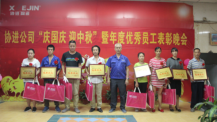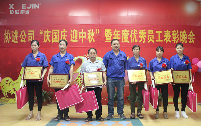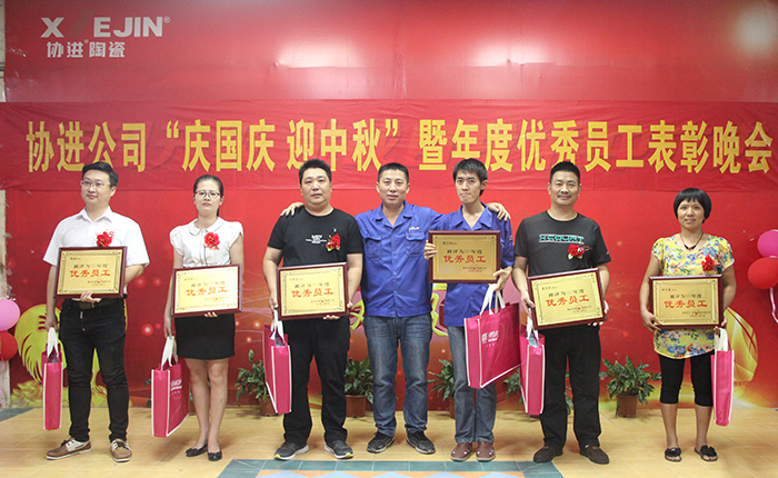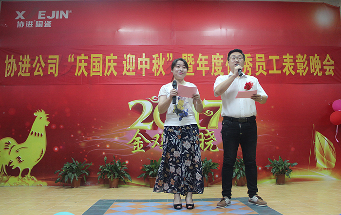 9月29日晚,金秋送爽,星空璀璨,協(xié)進(jìn)廠區(qū),華燈輝映,彩旗飄揚(yáng)。為了慶祝即將到來的中華人民共和國68周年華誕,喜迎中秋佳節(jié),同時為了表彰先進(jìn)、樹立榜樣,鼓勵“人人爭當(dāng)模范”的工作激情,弘揚(yáng)“正品、精工、盡美、至善”的企業(yè)理念,倡導(dǎo)“攜手創(chuàng)輝煌,創(chuàng)新求卓越”的協(xié)進(jìn)精神,協(xié)進(jìn)陶瓷2017年歡度國慶喜迎中秋暨優(yōu)秀員工表彰文娛晚會在公司禮堂隆重舉行。